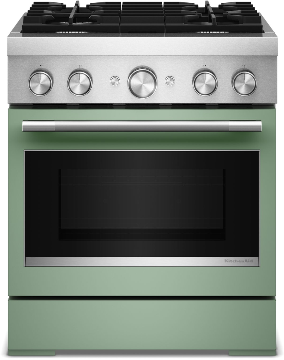 Empower your creativity with a 30-inch KitchenAid® Commercial Style Range with 4 burners. This dual fuel range combines a gas cooktop with the even baking of an electric oven. Two versatile 20,000 BTU Ultra Power™ Dual-Flame Burners offer the power and precision to sear, simmer, stir-fry and sauté. Even-Heat™ True Convection gives consistent baking and roasting, plus air fry mode that yields crispy, golden resultsRead More