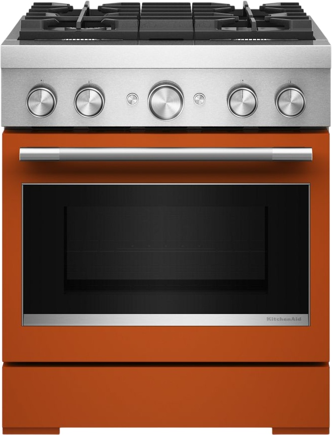 Empower your creativity with a 30-inch KitchenAid® commercial style range with 4 burners. This dual fuel range combines a gas cooktop with the even baking of an electric oven. Two versatile 20,000 BTU ultra power™ dual-flame burners offer the power and precision to sear, simmer, stir-fry and sauté.Read More